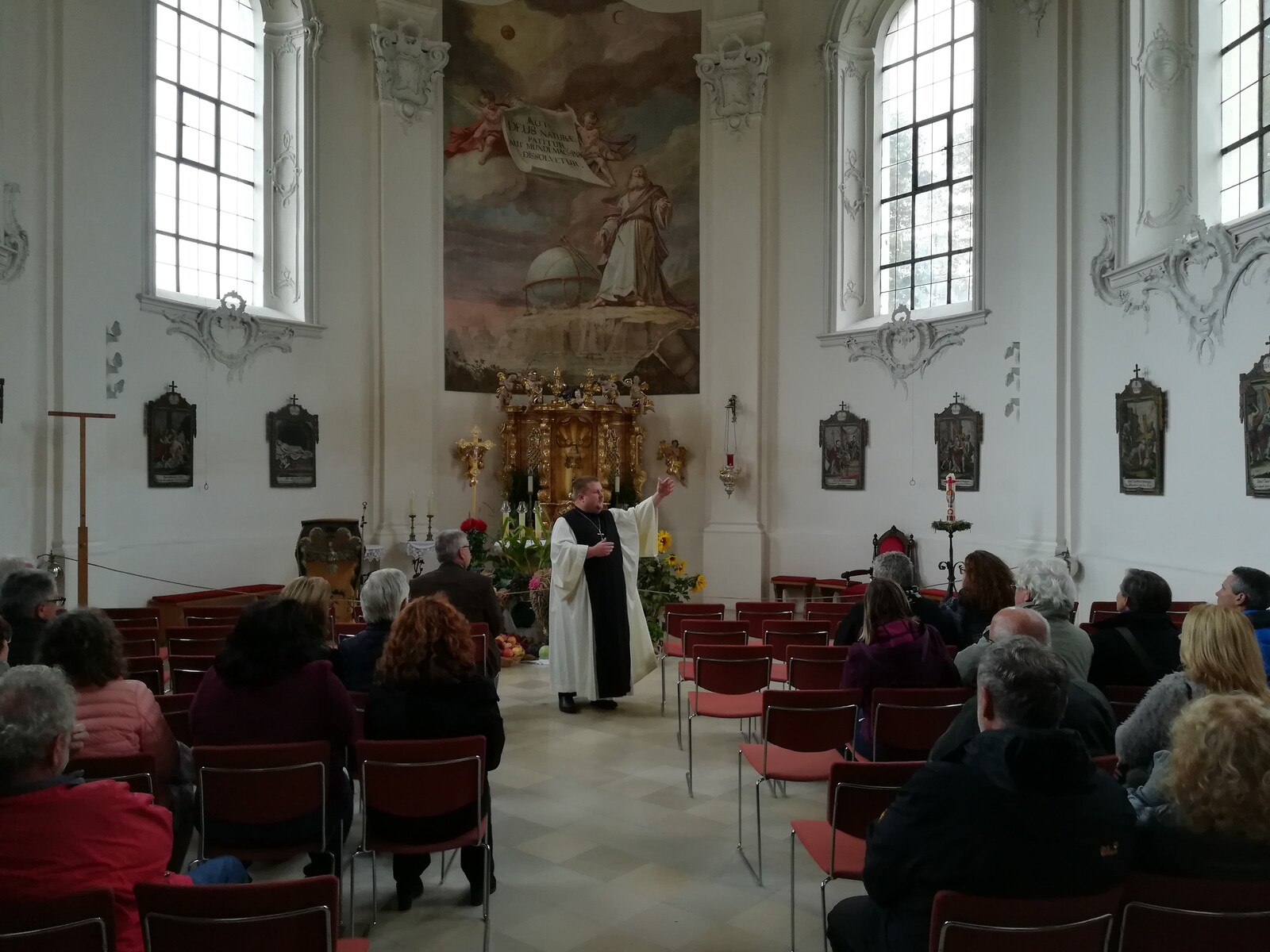 Kleinod der Portenkirche ist das Deckenfresko von Matthäus Günther aus dem Jahre 1767, das die „Sieben Schmerzen Mariens“ darstellt. Die Stuckarbeiten stammen von Johann Baptist Modler.